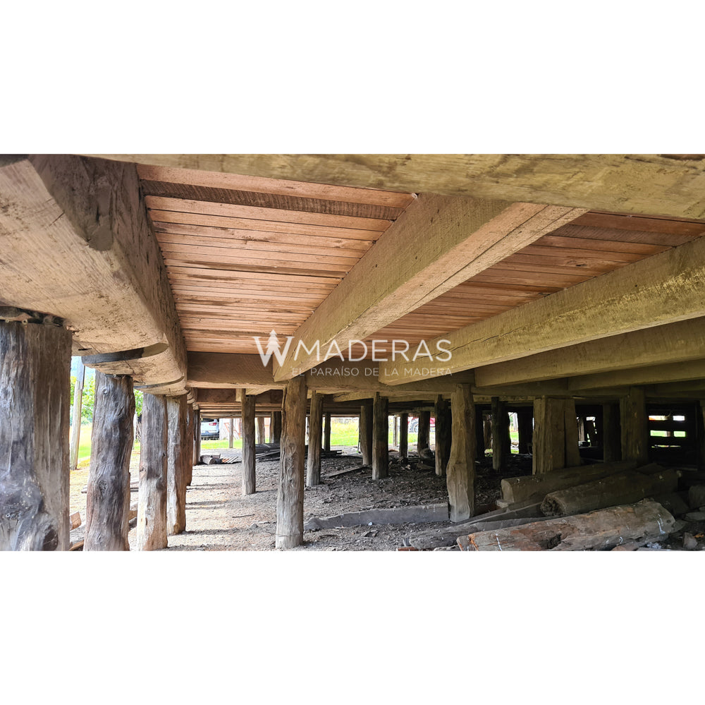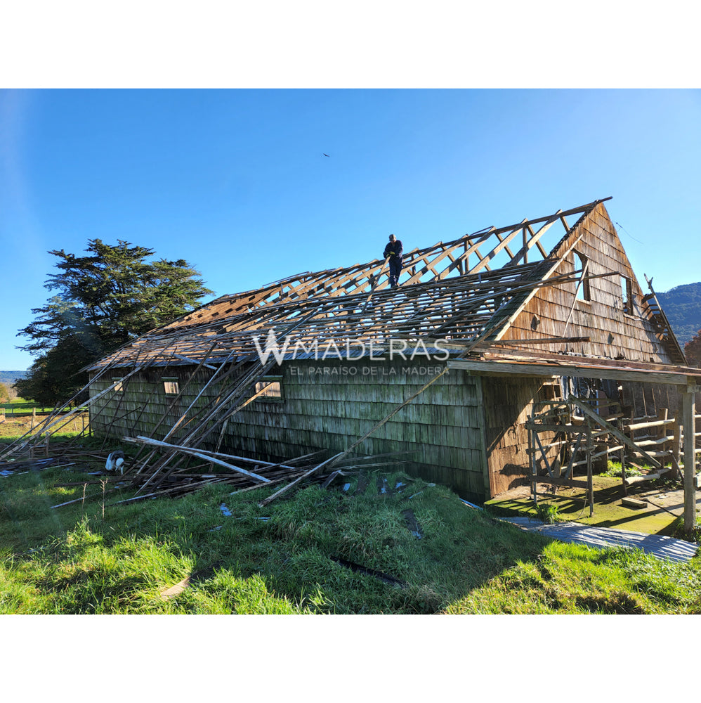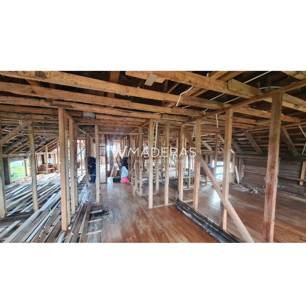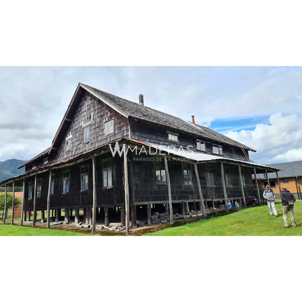Podemos encontrar vigas y pilares dimensionados y sobredimensionados. Tablas, tablones y piso, tabiqueria, y tejuelas de Alerce