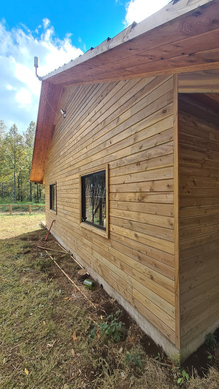 El dueño quería una madera de buena calidad/precio y le ofrecimos madera de Pino Oregón, le gustó y se construyó toda la casa con Pino Oregón natural e Impregnado.