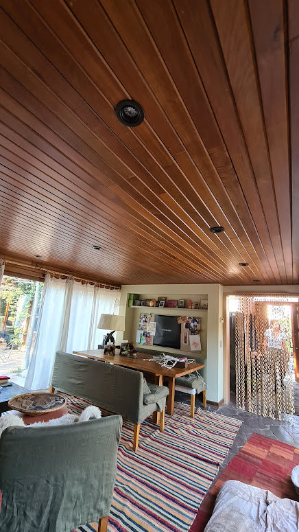 Le recomendamos ocupar madera de Mañio para las Vigas y para el cielo, ayudando a darle ese toque de calidad y acogedor.