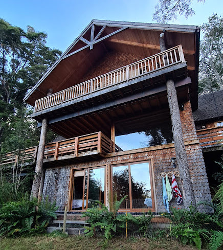 La casa la revestimos con tejuelas de Roble, que con el tiempo y el sol han adquirido ese color grisáceo