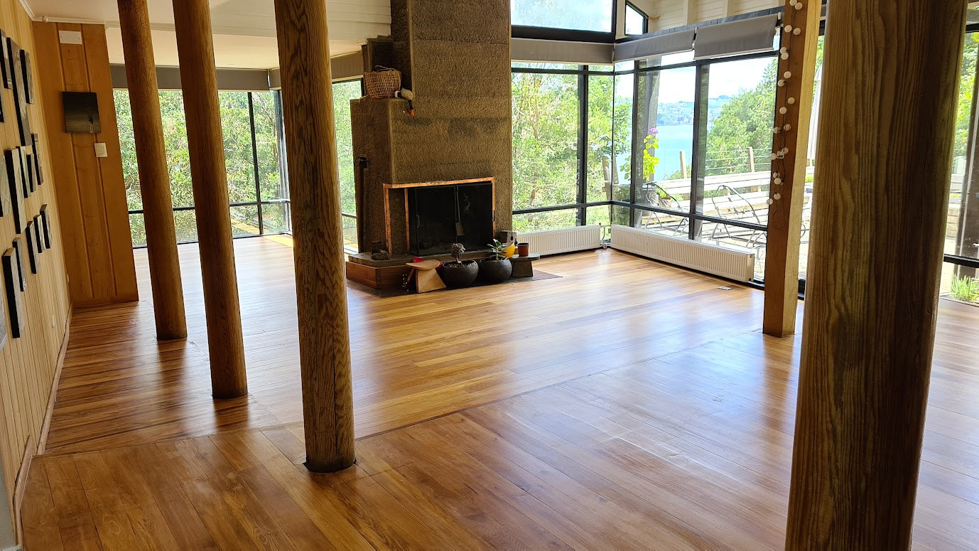 Una madera premium, muy luminosa y de calidad. Junto con eso le vendimos los pilares de Alerce, que en su minuto fueron postes de Luz. Los rescatamos, cepillamos e instalamos dando ese gran resultado.