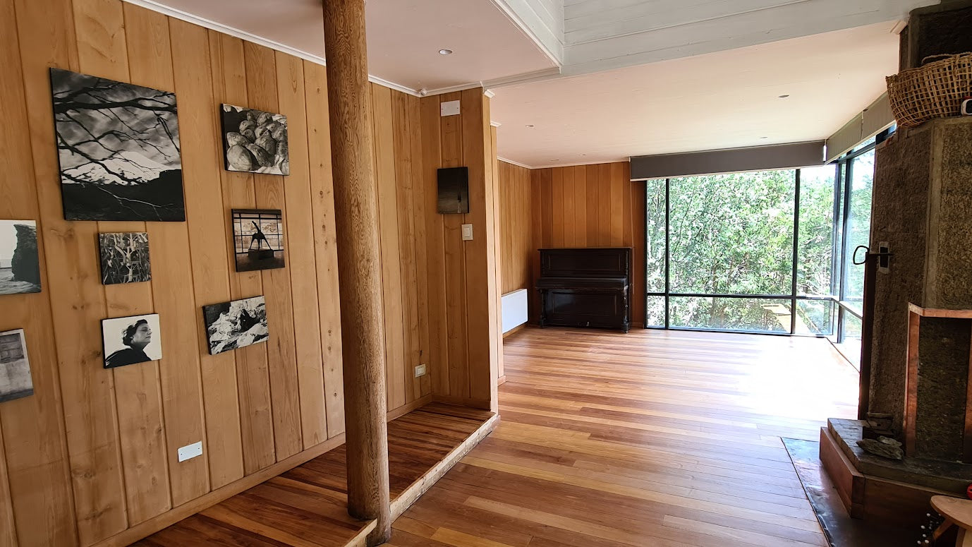 En el segundo piso usamos madera de Laurel reciclada de casas antiguas de la zona de Frutillar. Madera de muy buena calidad y que hoy en día está muy escasa para ser instalada en el piso. Junto con eso usamos las puertas de la misma casa que rescatamos para reutilizarlas de madera de Alerce