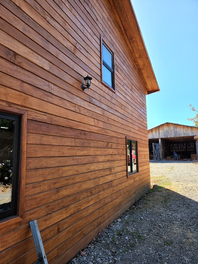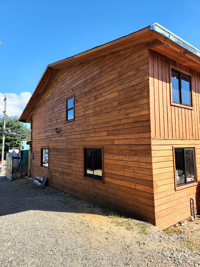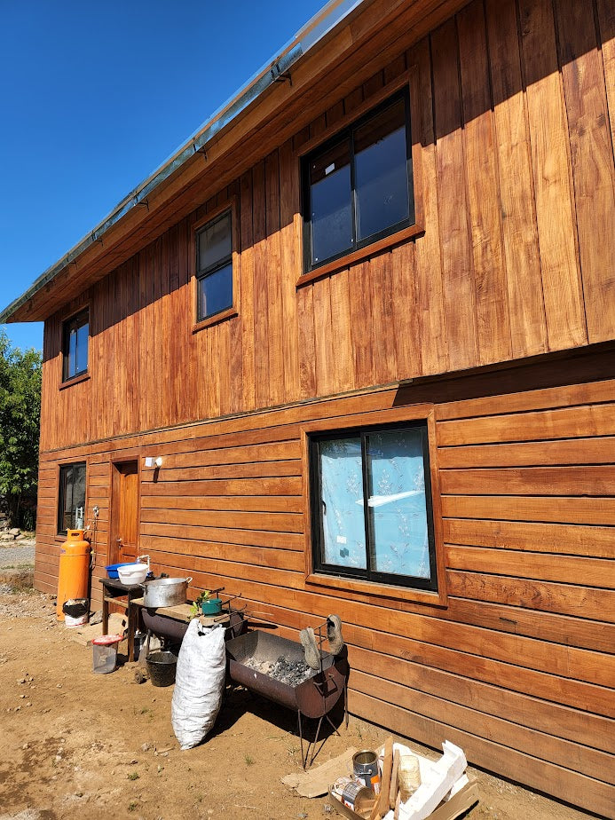 Esta casa del sur de nuestro país, fué revestida por completo en el exterior con madera de Coihue, dándole esa tonalidad única y resistente