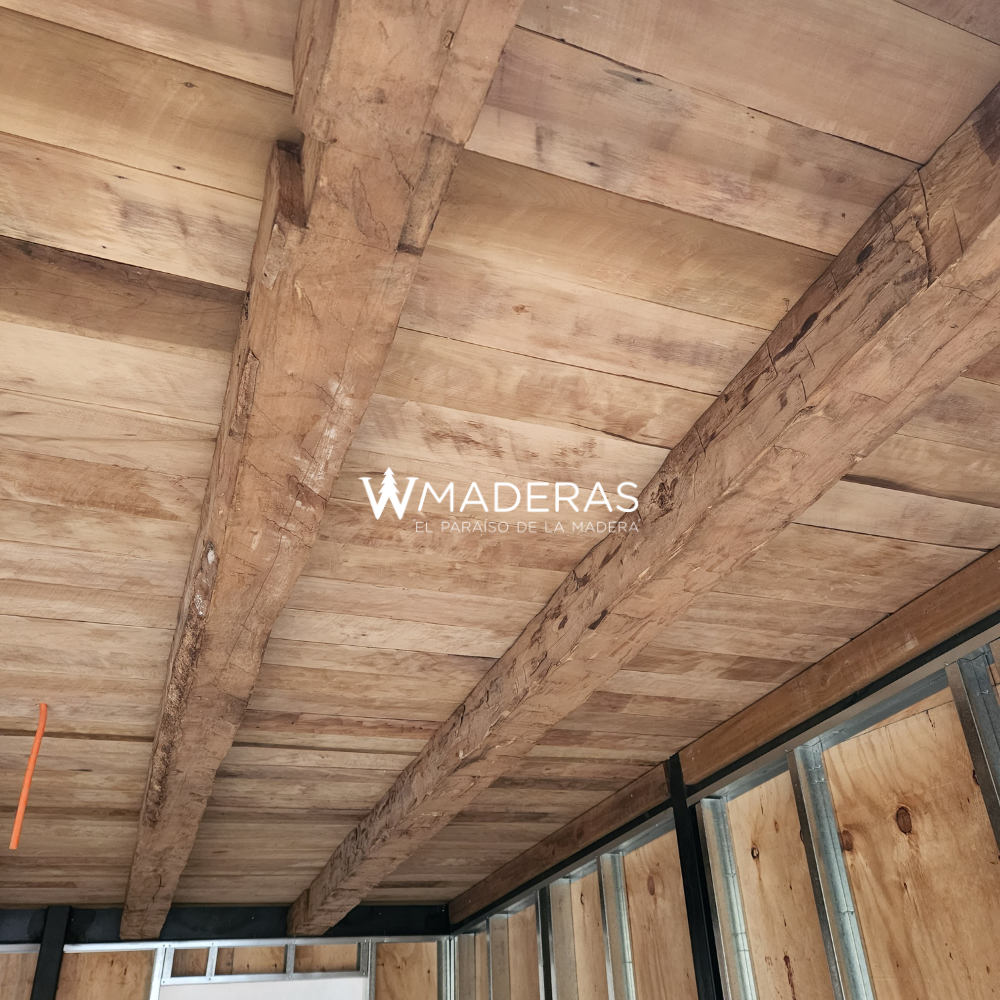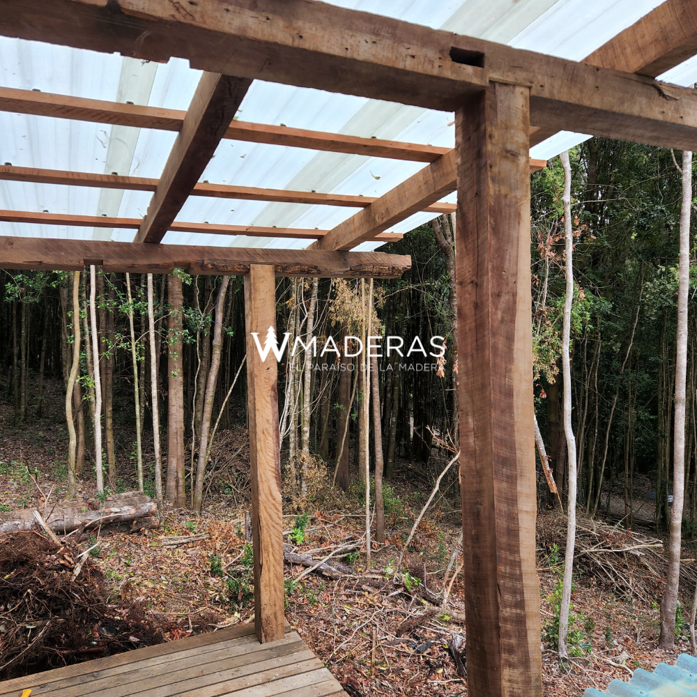 Proyecto realizado con Roble pellín reciclado cepillado, Vigas y cielo Quincho con hacha canelo