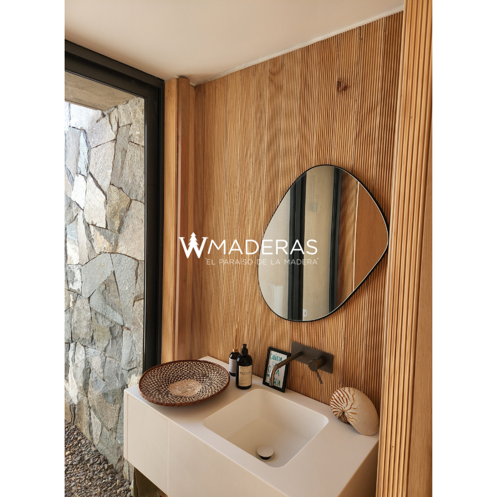 En el baño, el revestimiento de pino clear brinda calidez y luminosidad, creando un oasis de tranquilidad y estilo.