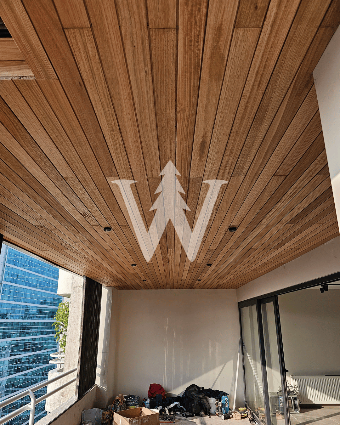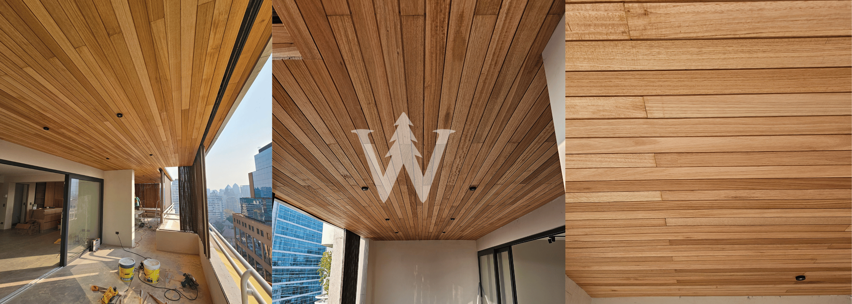 En este proyecto se instaló Revestimiento de Eucaliptus en el cielo de la terraza de un departamento, logrando un acabado cálido, moderno y elegante. La madera aporta resistencia y durabilidad, a la vez que transforma el espacio en un lugar acogedor y sofisticado para disfrutar al aire libre.