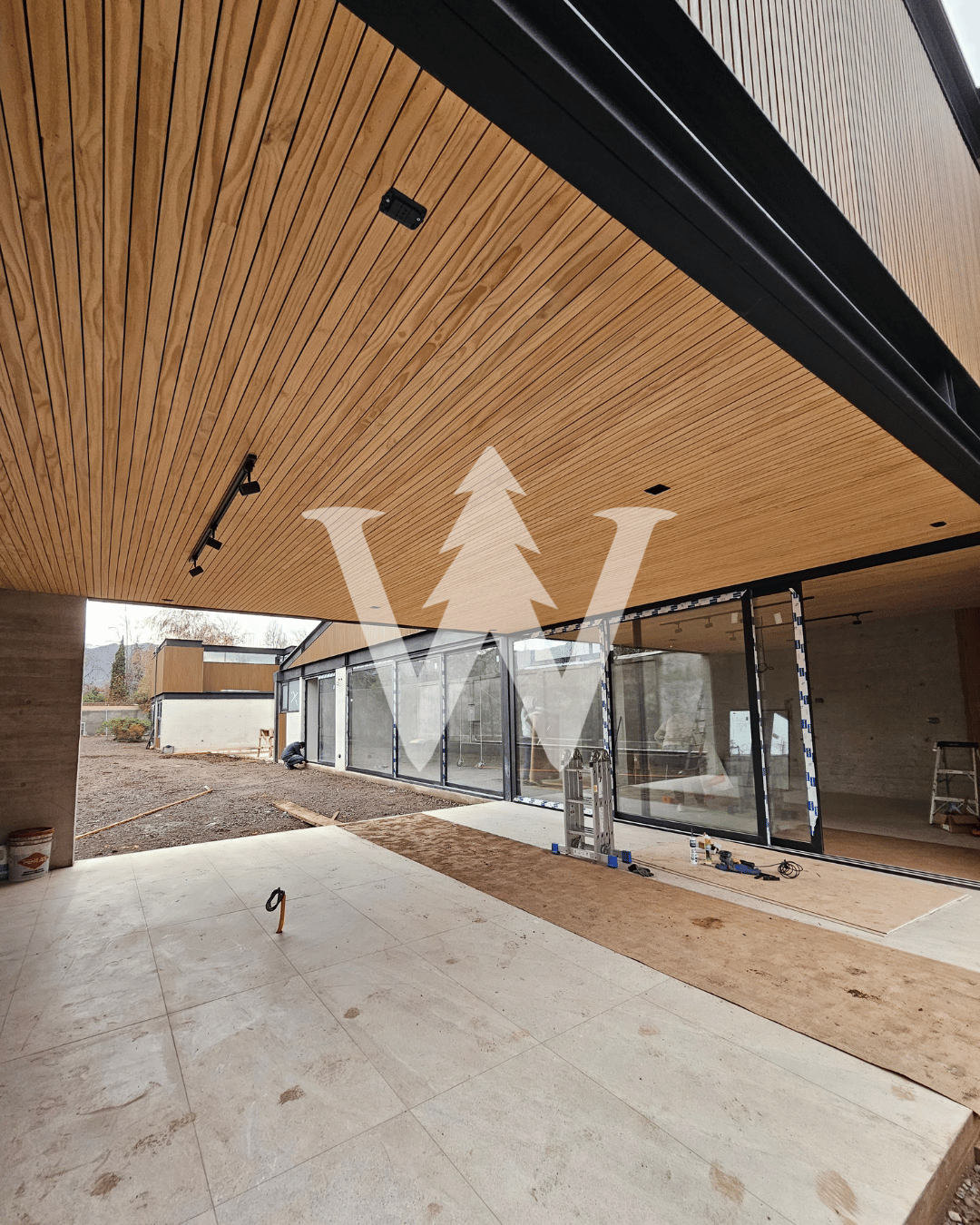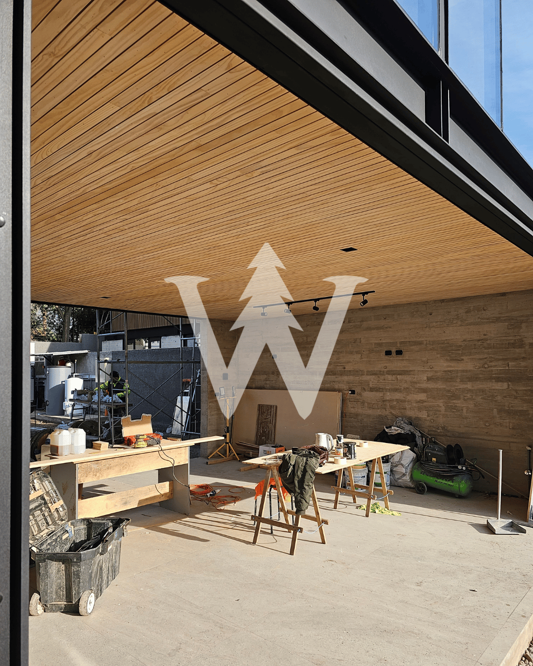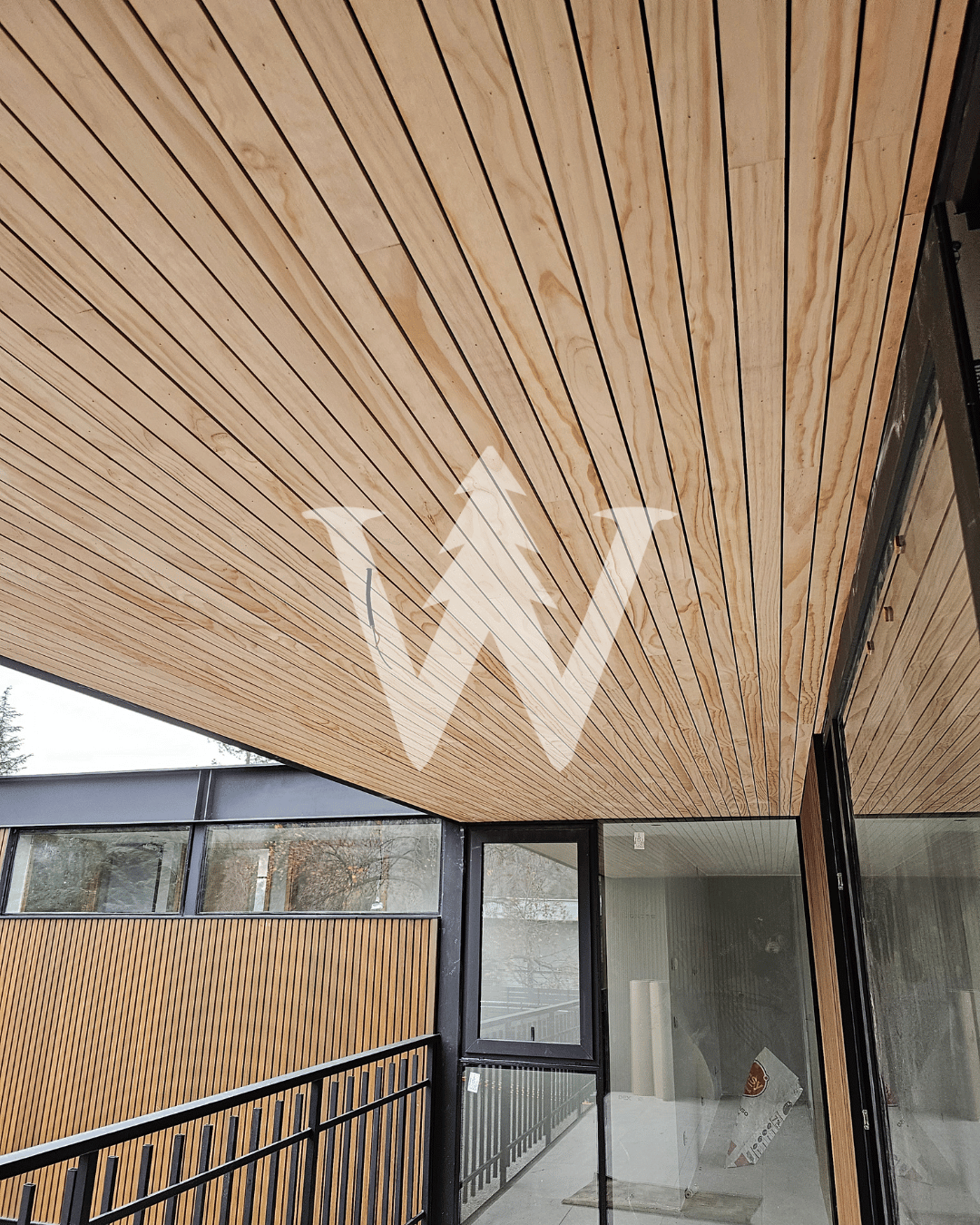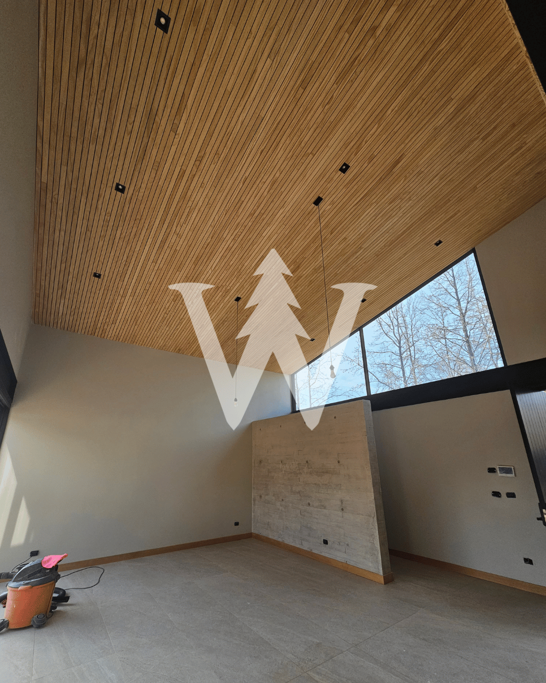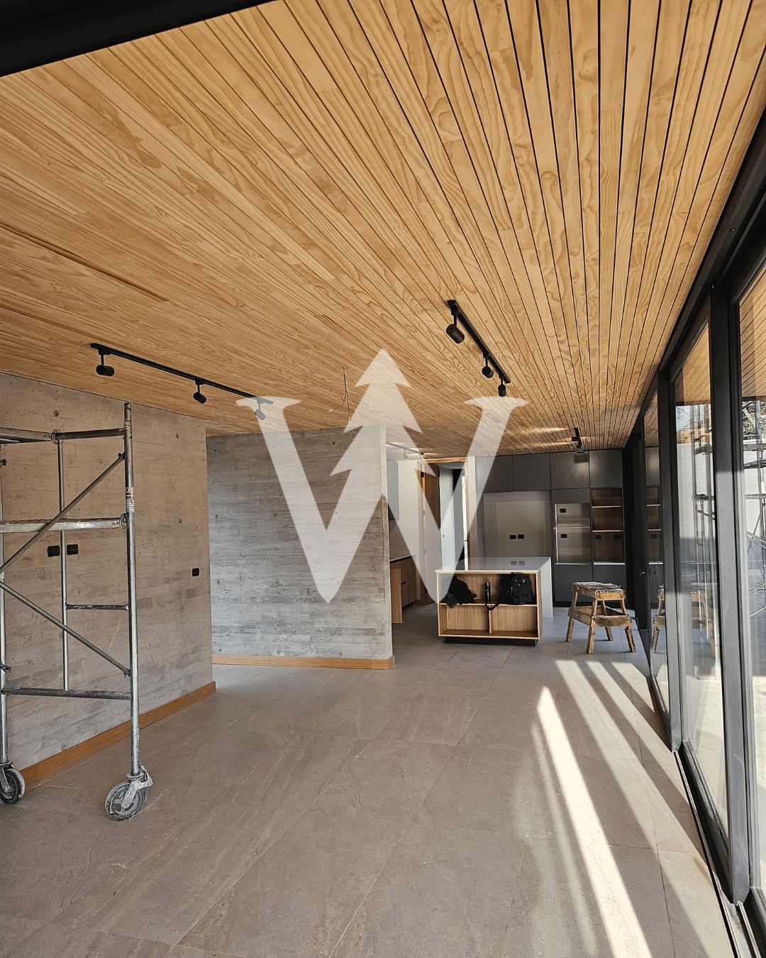 En este proyecto ubicado en La Dehesa, se utilizó Pino Clear como elemento principal para revestir los cielos de todas las áreas del condominio, logrando una estética limpia, cálida y de alto estándar.