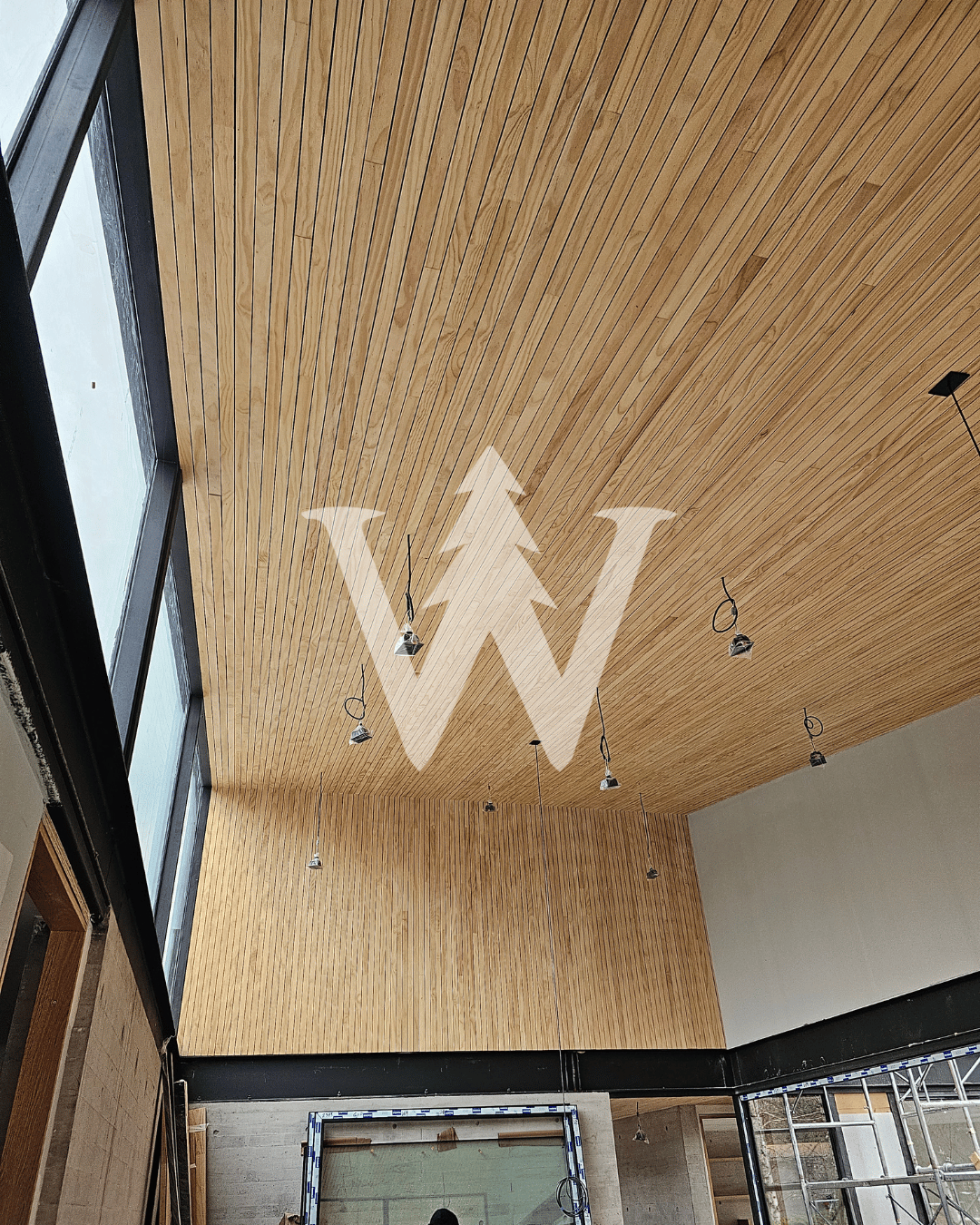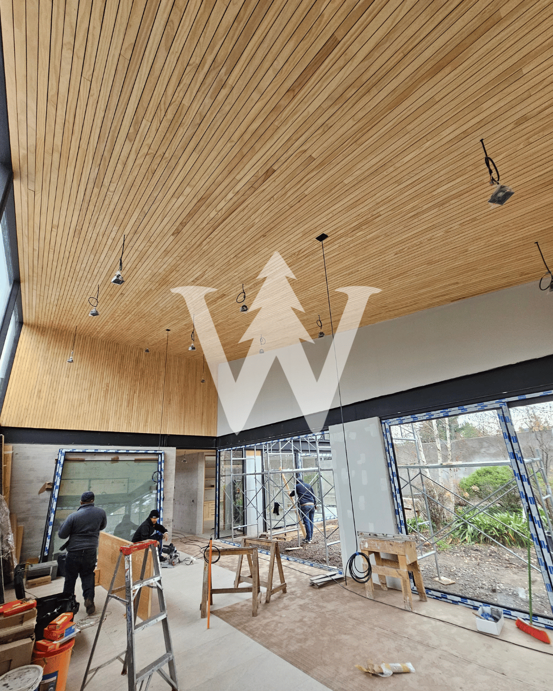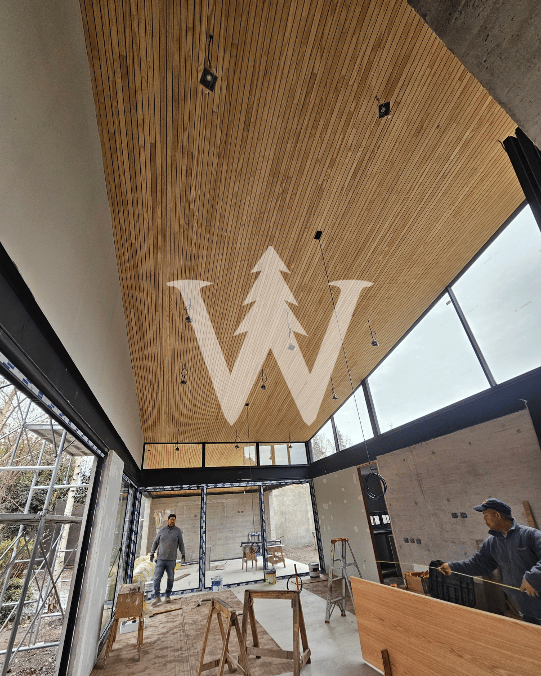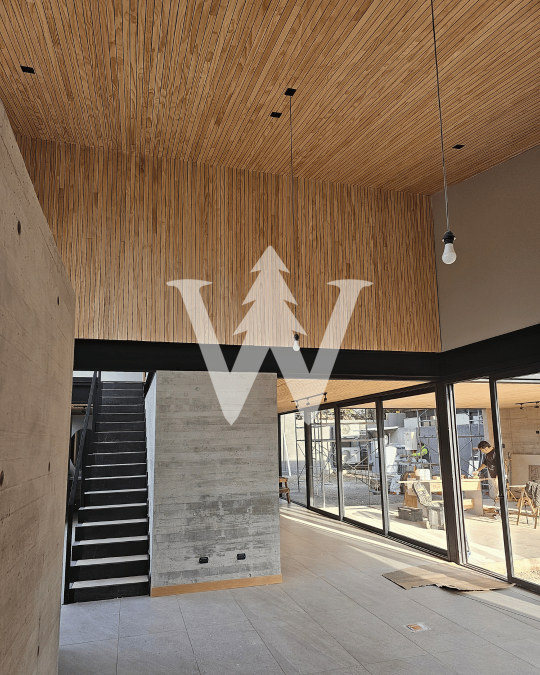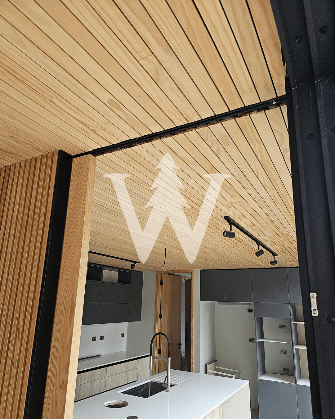 El Pino Clear, seleccionado por su apariencia libre de nudos y su tonalidad uniforme, permitió mantener una continuidad visual en todo el proyecto, aportando luminosidad, calidez y un lenguaje arquitectónico natural y moderno.