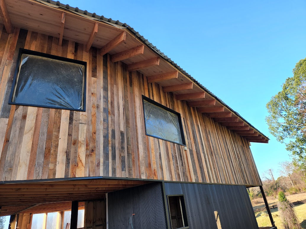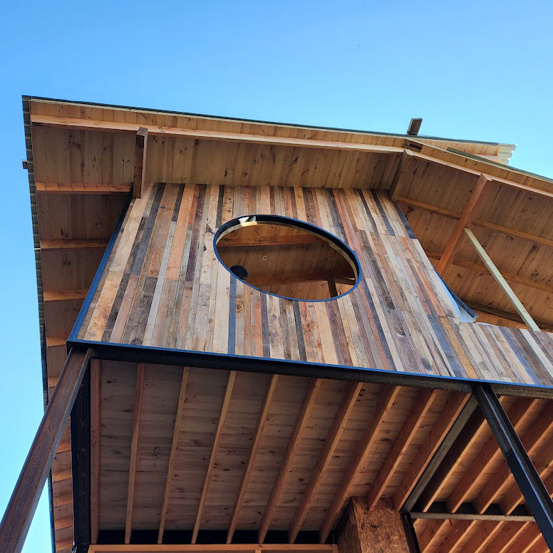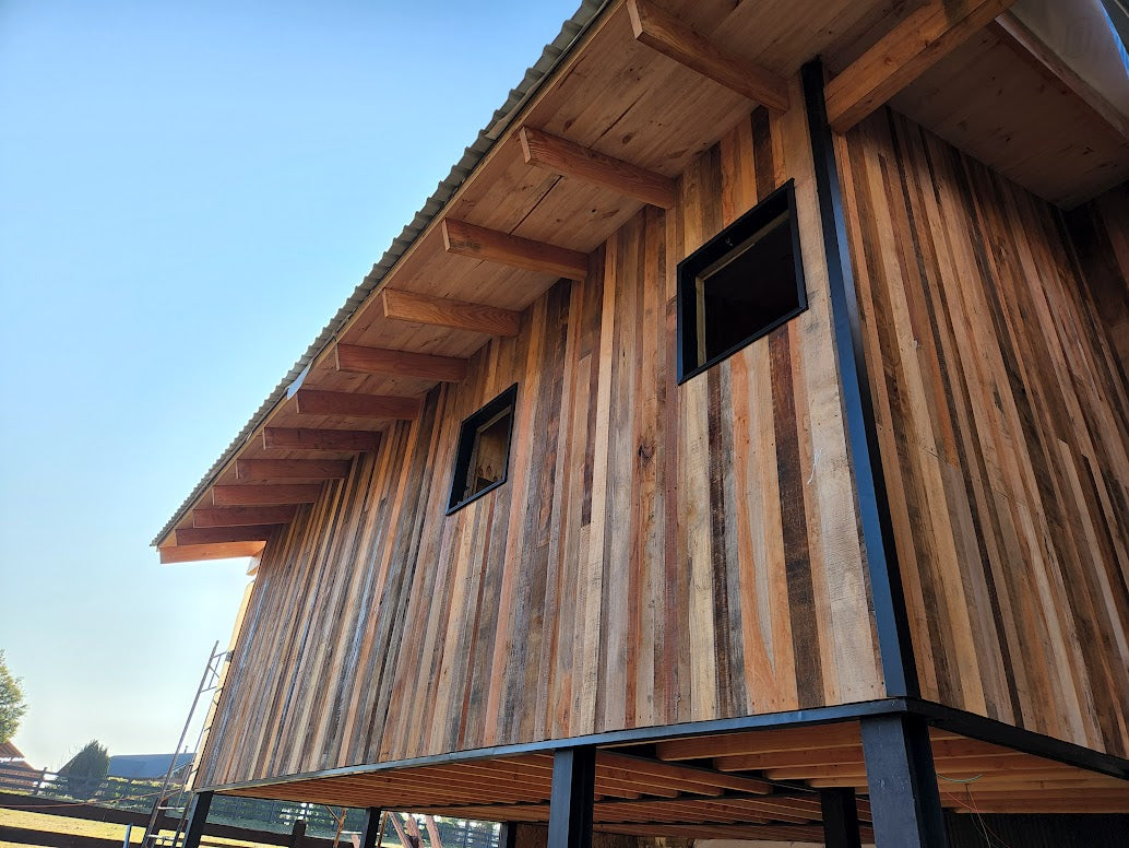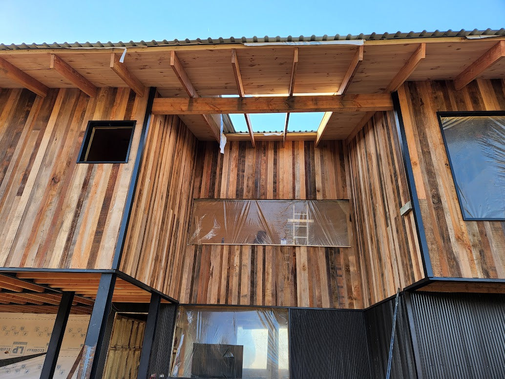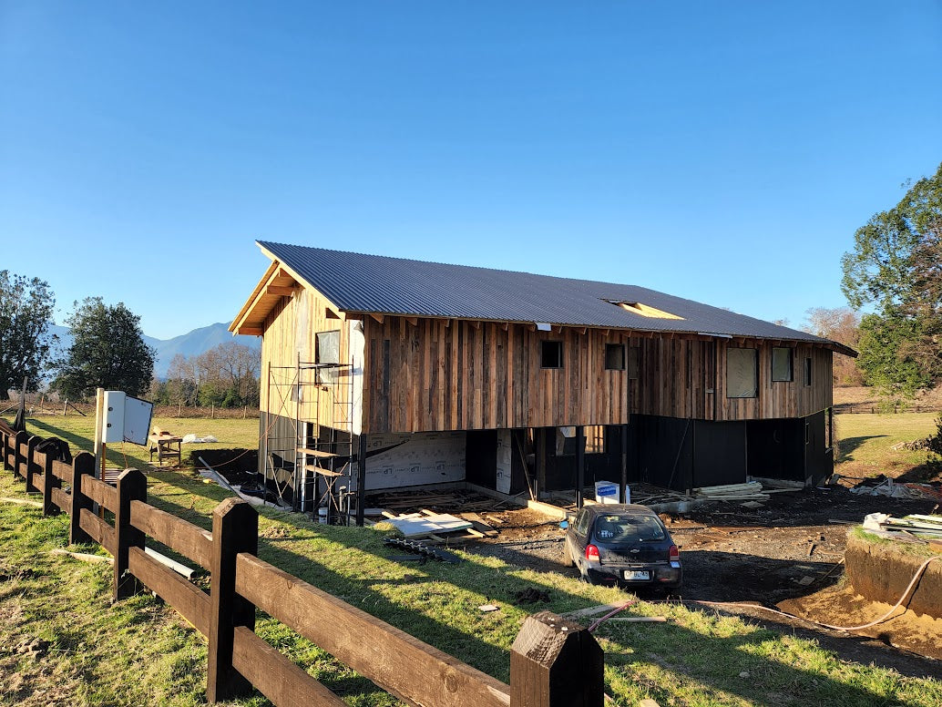 En el exterior utilizamos tablas de madera nativa como: Roble, Raulí, Coihue. Las tablas fueron fabricadas con machihembrado canto recto de 2mm en su cara lateral para poder unirlas de forma correcta.