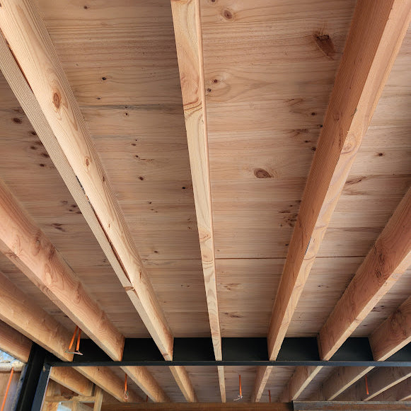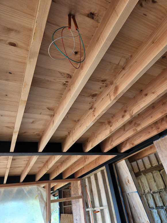 Vigas a la vista de Pino Oregón y revestimiento y cielo de Pino Insigne. Maderas de muy buena calidad/Precio