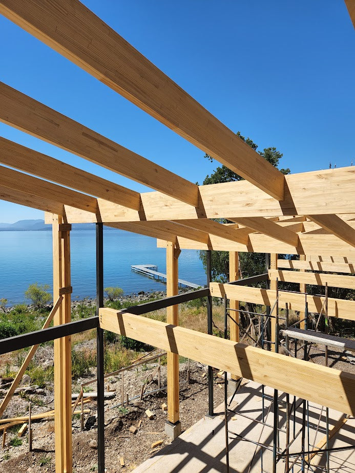 En este proyecto podemos ver la calidad premium de nuestras vigas y pilares de Pino clear en 3 casas en el Lago Villarrica.
