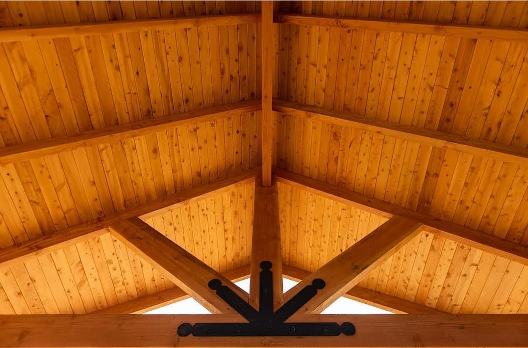 Revestimiento o Cielo de Ciprés y Vigas sobredimensionadas de Pino Insigne