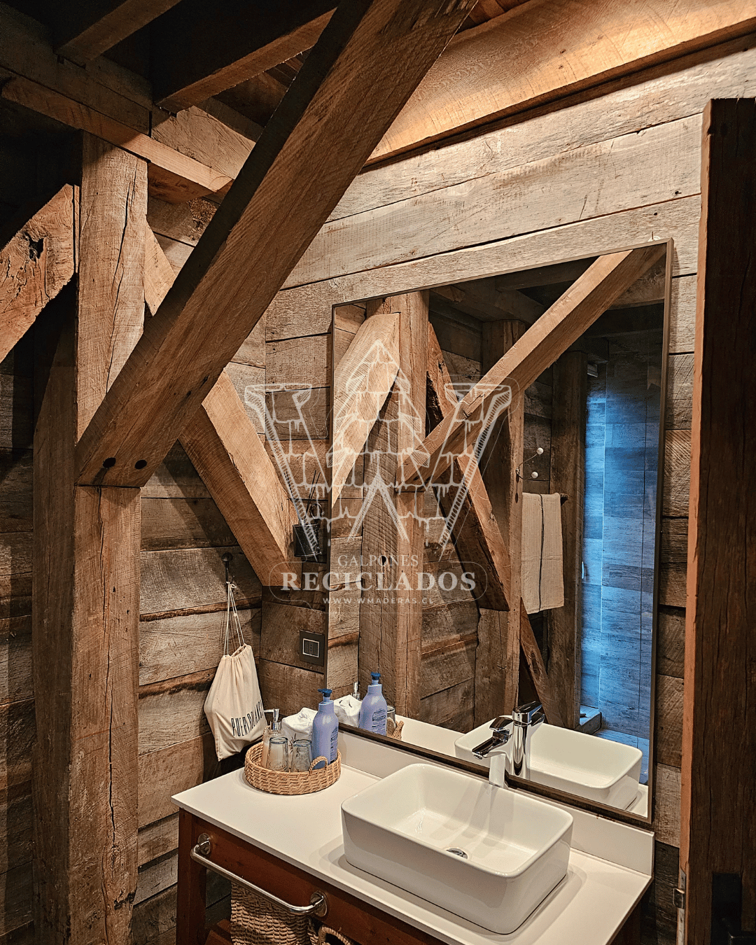 El resultado es una vivienda que conserva la identidad histórica del galpón, pero con un diseño actual y funcional que resalta la nobleza de las maderas nativas recicladas.