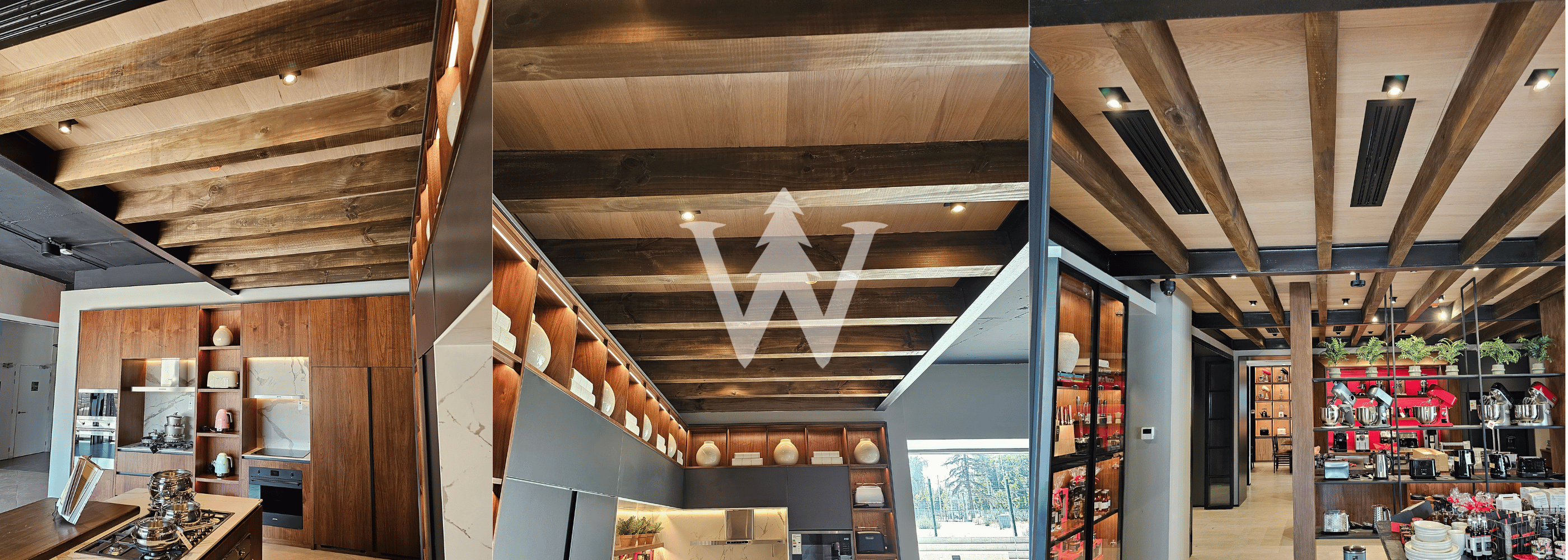 En la Tienda Coquinaria se incorporaron vigas de Pino Insigne, aportando calidez, resistencia y un estilo natural al diseño arquitectónico. La nobleza de esta madera permite un acabado funcional y estético, ideal para espacios comerciales que buscan durabilidad y carácter.