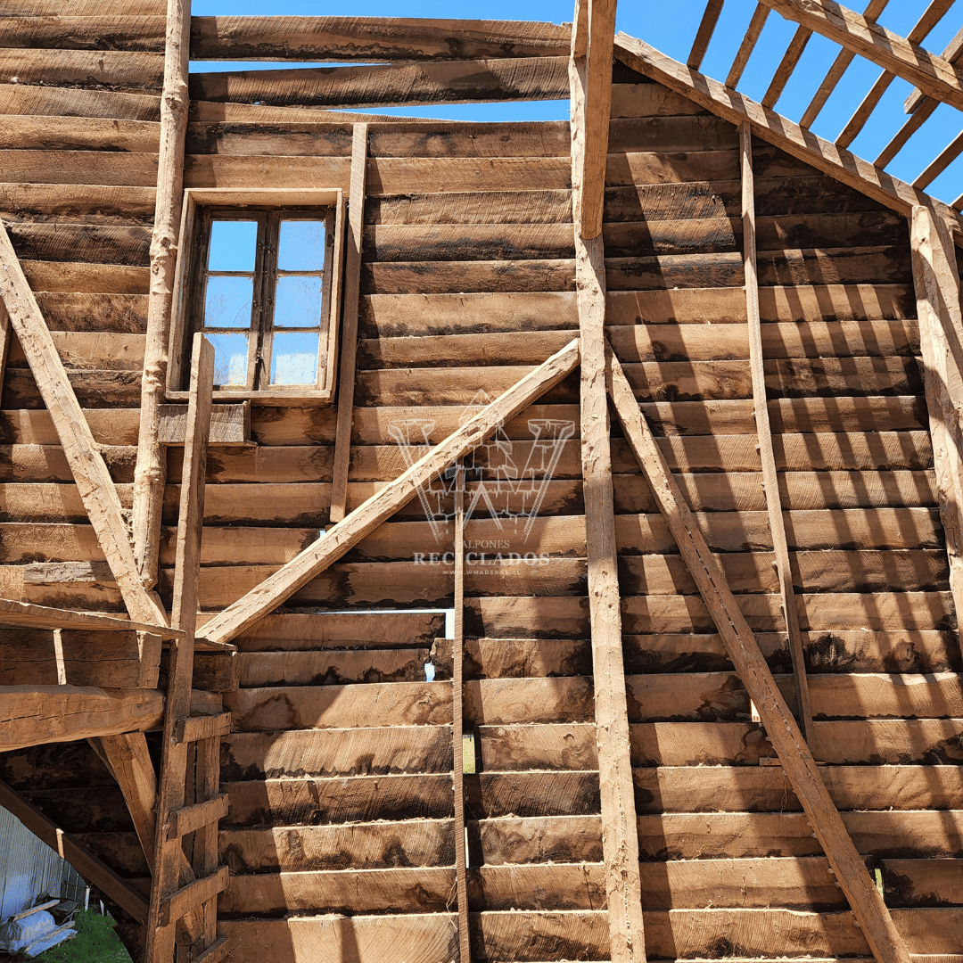 La madera viene original a como fue rescatada. Su cara trasera viene en bruto y delantera machihembrada.